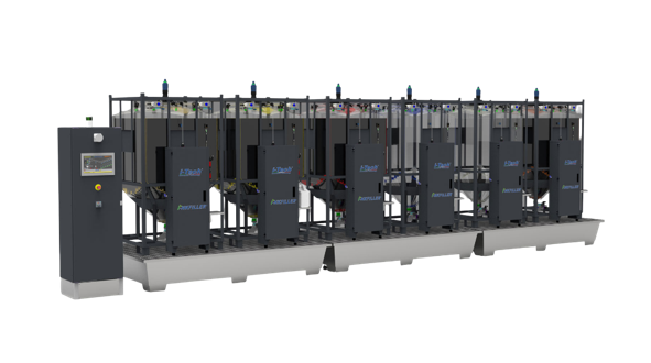 Linea automática de agitación con mezcladores giroscópicos Fast & Fluid Management
